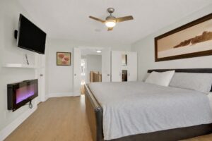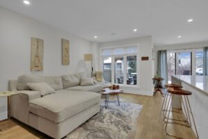 Amazing location on one of the most sought-after townhome streets in Stittsville, backing onto single-family homes for added privacy. Built by Patten Homes, this beautifully upgraded residence offers an exceptional open-concept layout with site-finished hardwood flooring on both the main and second levels. The gourmet kitchen features modern cabinetry, a striking herringbone backsplash, marble countertops, a large island with breakfast bar, high-end stainless steel appliances, and an additional buffet cabinet in the eating area. Large windows and a patio door lead to the deck, allowing natural light to flood the living space. A formal dining room is perfect for entertaining, while the two-sided gas fireplace provides warmth and ambiance throughout the main living areas. Flat ceilings, pot lights, quality light fixtures, and window treatments add to the home’s refined appeal. 2pc bath off the foyer and inside access to spacious single garage w/garage door opener. Carpeted staircase with oak & wrought iron rails lead you to the upper level. The spacious primary bedroom easily accommodates a king-size bed and includes a walk-in closet with custom built-ins, and a luxurious 3-piece ensuite with quartz counters, double sinks, and a large glass shower. Two additional well-sized bedrooms with generous closets, a second-floor laundry closet with shelving, and a full 4-piece bath complete the upper level. The fully finished lower level offers an excellent entertaining space with quality laminate flooring, a large wall unit (included), a 2-piece bath, and multiple storage rooms. Other rooms in the basement are storage areas and walk in closets. Enjoy the fully fenced backyard featuring mature trees, exceptional privacy, a two-tier deck with built-in bar, and gas BBQ hookup. Roof replaced in 2022, central air installed in 2016. One photo has been virtually staged. Easy to show.24 hours on all offers.
